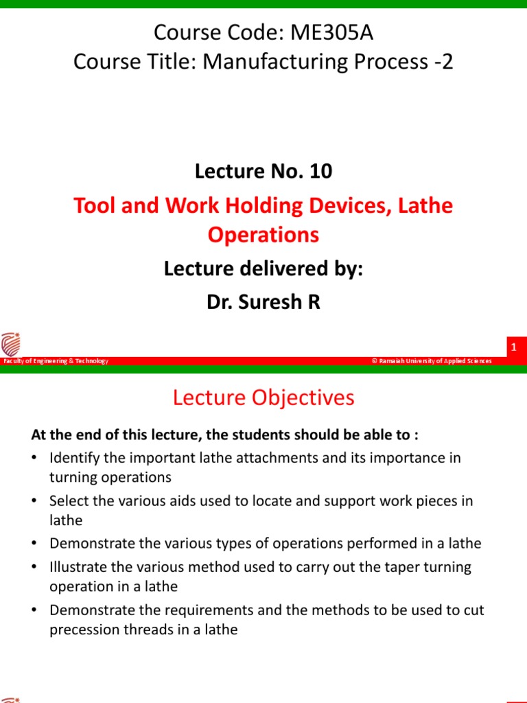Course Code ME305A Course Title Manufacturing Process 2 Tool and Work Holding And Tool Holding Devices In Lathe workholding plays a critical role in any machining process. They are efficient and accurate. one of the most popular ways to hold work on in a lathe is by using chucks or jaw chucks. Common accessories for a lathe machine include chuck, face plate, lathe centers, steady rest, and mandrels. work holding devices in lathe machine. . Work Holding And Tool Holding Devices In Lathe.